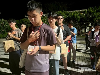 9月8日晚間,「陶成營」迎來最具象徵意義的「薪火相傳」儀式。在降臨堂莊嚴氛圍中,燭火自師長、校友之手傳遞到新生手中,象徵聖約翰精神的延續與承接。隨後,新生手持燭火,沿聖約翰路、施約瑟路、聖瑪利亞路、法章路至百齡堂,燭光在夜色中匯聚成一條光之長河,象徵他們即將展開的求學旅程,也見證「光與真理」精神的綿延不息。