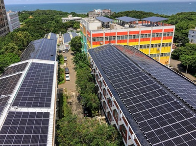 聖約翰科大位於新北市淡水區,坐擁山海交會的自然環境,更深刻理解與環境共存的重要。多年來,學校以「綠能永續、智慧科技、健康樂活」為校務發展主軸,持續投入能源管理與碳排減量。屋頂太陽能系統裝置容量達1.1MW,不僅能供應校內主要電力,更做為學生研究再生能源與永續科技的重要實驗基地。根據統計,113年度全校用電量較前3年平均下降54.78%,用水量也減少3.2%,顯示節能成效已具體落實於校園運作。