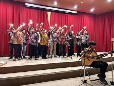 活動現場也充滿精彩亮點。來自印尼的新生馬志學帶來自彈自唱演出,儘管因吉他調整使手指略有不適,他仍以真摯歌聲征服全場,展現投入與勇氣。他分享,剛到臺灣時難免緊張,但師長與同學的熱情讓他安心許多,他會努力適應並珍惜每一天。而印尼班學生也帶來舞蹈與歌唱,展現濃厚文化風采,將活動氣氛推向最高潮。