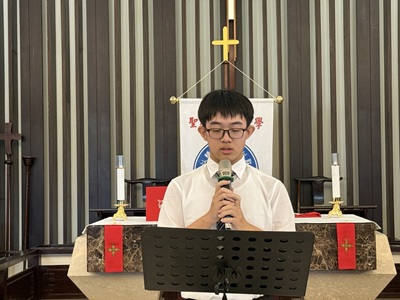 學長也勉勵同學,人生道路漫長,未來仍有許多機會等待著大家。他引用聖約翰精神中的「光與真理」勉勵成年同學勇敢前行、對得起自己、走出屬於自己的方向。最後,他代表校友總會獻上祝福,期盼所有成年同學未來順心、平安並持續發光。