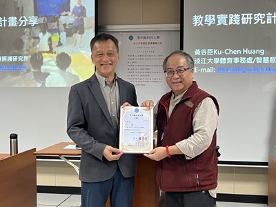 最後,唐彥博校長表示,淡江大學的作法值得借鏡,未來將研議修訂學校優良教師遴選辦法,納入教學實踐研究計畫相關項目,以鼓勵教師持續提出計畫、深化教學品質。唐校長並感謝黃教授以虛懷若谷的態度分享多年經驗,為校內教師帶來豐富且具啟發性的專業視野。