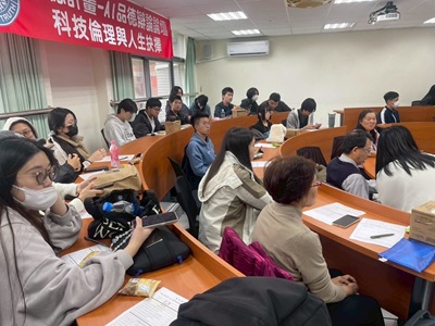 本活動的亮點為奧瑞岡式辯論實作,講師以「AI 科技倫理與人生抉擇:Yes or No?」為題,引導學生分組討論、換位思考,並進行求助者、AI 助手與旁觀者等角色扮演。學生在辯論中不只釐清科技的助益與侷限,也透過互評練習理解多元觀點的重要性。活動現場討論熱烈,從醫療分配、長照應用到情緒預測,學生皆能提出具體而深度的觀點。
