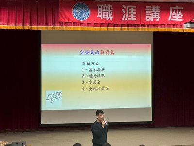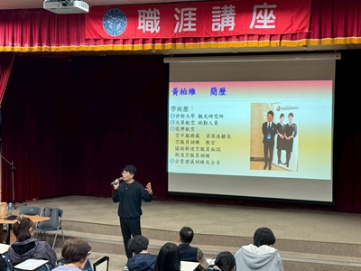 本次講座特別邀請前復興航空座艙長黃柏維擔任主講人,從自身職涯歷程出發,帶領學生認識空服員在「3萬5千英呎空中辦公室」中的真實工作樣貌。黃柏維結合多年第一線飛航服務與管理經驗,深入解析空服人員在高壓環境中所需具備的關鍵職能,包括專業態度、溝通協調、情緒管理、團隊合作與風險意識,並進一步說明這些能力如何轉化為各行各業皆適用的職場核心競爭力,協助學生將航空專業經驗連結至自身未來發展。