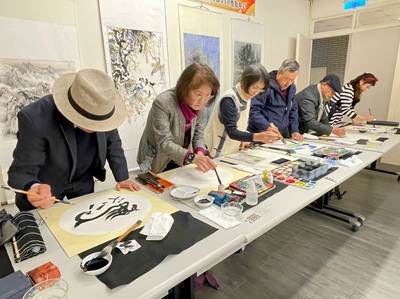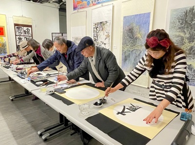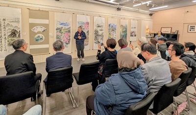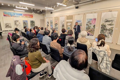 開幕當天,多位藝術家於現場進行揮毫與作畫示範,師生得以近距離觀賞創作過程中的筆墨節奏與構圖思維,感受藝術從構思到完成的即時轉化。透過現場創作與互動交流,讓藝術不再只是展牆上的作品,而是成為可被理解、可被對話的學習經驗,深化校園美感教育的實踐。