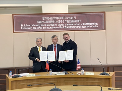 聖約翰科技大學與美國Nasdaq上市金融科技企業美商Datavault AI Inc. (以下簡稱Datavault AI)於2026年1月26日下午正式簽署產學合作備忘錄(MOU),宣布於校內成立全球首座專責「真實世界資產」(Real World Assets, RWA)開發與應用之國際研究中心。此次合作獲美商Datavault AI承諾投入研發專款支持中心營運,期盼確立臺灣學術界在Web3金融技術標準的全球領航地位。