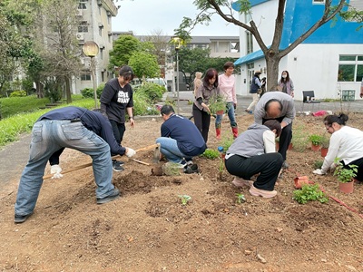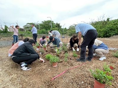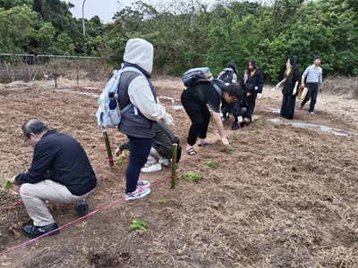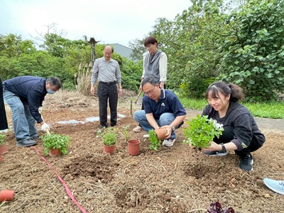 為了確保栽種過程順利且符合農業專業,學校更特別邀請許清雲及孫東元兩位經驗豐富的在地農夫蒞臨現場,親自指導師生們各項栽種技巧。從最初的整地、鬆土挖洞、細心整理植物根部,到將幼苗安穩種入土中,再到最後的覆土與澆水,每一個步驟都蘊含農人的智慧與辛勞。參與者在實地操作中,真切體驗一日農夫的樂趣,更深刻體會到食物得來不易的珍貴,進而培養出敬天愛地、感恩惜福的情懷。