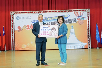 聖約翰科技大學於115年4月18日隆重舉辦「59週年校慶慶祝大會」,適逢創校即將邁入一甲子的重要里程碑,董事會成員、校友總會理事長、各界貴賓及師生齊聚一堂。典禮不僅展示全國首創「校友治校」的辦學成果,更透過一系列捐贈與獻獎儀式,體現「德以輔才、學以致用」的傳承力量。典禮現場氣氛熱烈,校友總會特別致贈代表59載傳承情誼的59個古早味手工雞蛋糕塔,為母校慶生,展現校友對母校的深厚情誼,成為當日最具溫度的焦點。