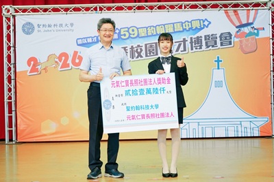 聖約翰科大的成長,仰賴校友與各界先進「飲水思源、熱血奉獻」的精神。大會中特別進行多項感恩捐贈儀式,其中由校友總會成立的首家校友企業「新埔之星創業投資公司」今年再度捐助新臺幣382萬元,為母校發展注入強勁動能;「沈祖海基金會」秉持上海約大校友沈祖海遺志,連續17年不間斷支持母校建設與學子成長,去年更將捐贈金額加倍至美金6萬元;弘瀚實業董事長游森林積極響應企業認養學生,捐助新臺幣100萬元以照顧弱勢學弟妹;「台灣聖公會」亦捐助62萬元扶助清寒學子。