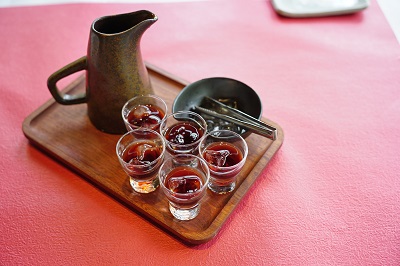 其他如生魚片、生菜沙拉、烤明蝦佐時蔬、玫瑰醋、靈芝茶、黑棗醋等等,每道菜皆注重擺盤與器皿的搭配,展現料理色香味俱全的藝術性。