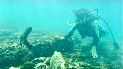 「這趟潛水帶給我滿滿的感動。」吳育潼學妹說,一開始因為耳壓不太能下潛,幸好教練不斷提醒並細心觀察,讓她慢慢克服恐懼,記得用嘴巴呼吸,最後順利下到3米多。水下的世界真的很奇妙,魚群環繞,還第一次摸到海參,被牠吐出的白絲嚇了一跳。