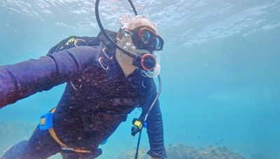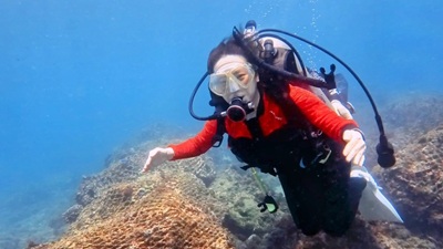 雖然原本希望由凱文學長陪她下水,但發現每位教練都很專業,讓她能安心享受潛水樂趣,也完成人生第一次的挑戰。