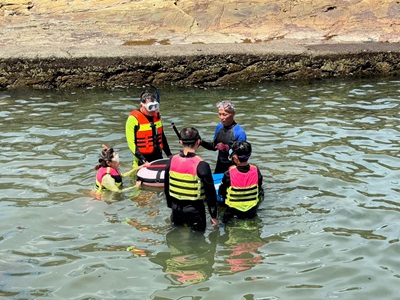 回程路上,他還興奮地說:『以後我們也開始去玩浮潛吧!』」李宇宸學長特別感謝教練團隊的用心帶領,讓家人能在東北角留下珍貴的回憶。
