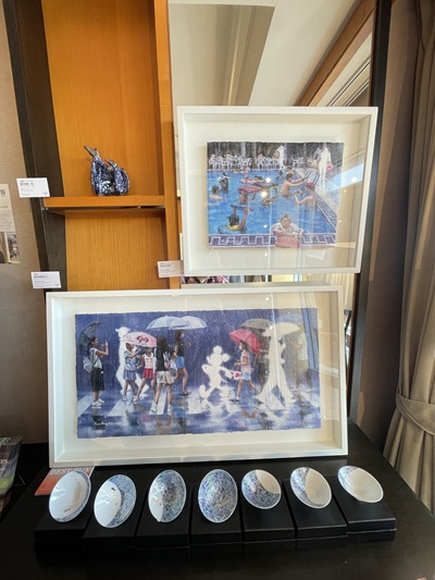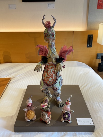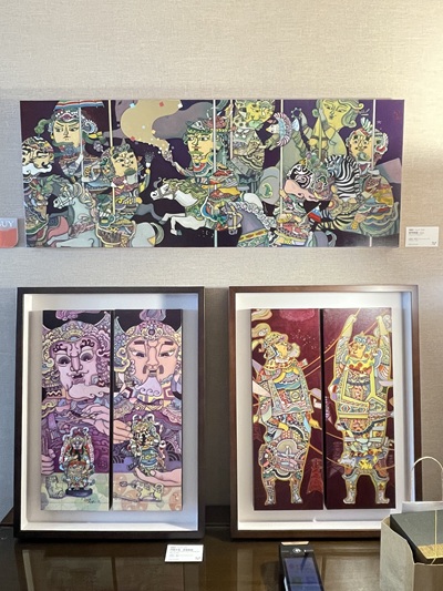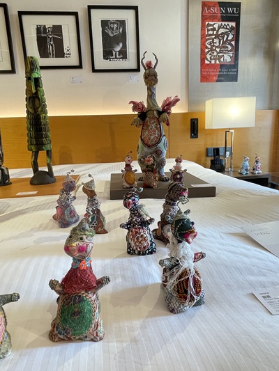 鶯歌光點美學館此次參展,帶來多件具有台灣文化特色的立體雕塑與平面繪畫作品,融合傳統元素與現代風格,展件中可見以陶藝、複合媒材創作的立體角色造型,造型生動、色彩細膩,帶有童趣與故事感,吸引不少觀展者駐足欣賞。