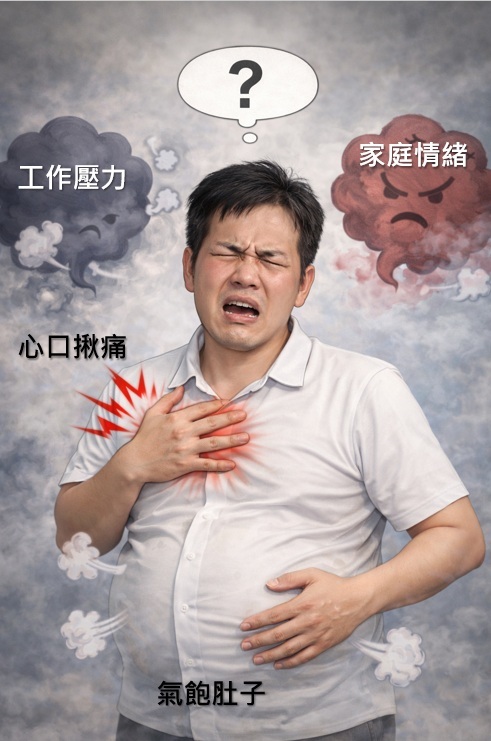 當然,這還不是重點。重點是過個年,大家吃吃喝喝,存糧還沒吃完呢,腸胃消化功能已經耗損一大半,這下又要清明祭祖,祭品需要「消化」⋯,而且春節時分,乍暖還寒,食物萬一沒注意保存好,有點酸敗沒發現,就給他嗑下去⋯⋯。 這事沒完,自詡腸胃消化功能還行的,目前還撐得住,很好,再過兩個月,來,端午節,吃粽子囉⋯,而且時序進入酷暑,當然得來點冰涼的⋯⋯嘿嘿嘿,老王已經看到大家臉上那淒然的笑囉⋯⋯。如果再加上上班有壓力,回家看到另一半就來氣,小孩更不順心意⋯⋯,有木有開始胸悶的感覺啦?帶點揪心的微微痛,有時喉頭還酸痛酸痛的?當然氣飽啦,氣在肚子裏,沒脹死就不錯了,嚴重一點,根本不想,甚至不敢吃飯。 嗯,不用懷疑啦,「最起碼」「胃食道逆流」起跳,就看能撐多久,撐得越久,一些亂七八糟的「疾病」就「領」得越多喔!老樣子,這些症狀用AI可以查到大半,老王也不用多做介紹了,不過還是來囉唆一下臨床看到的狀況⋯嗯,當然可以對號入座啊⋯。