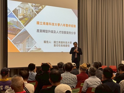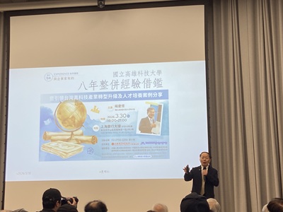 | 針對外部產業環境的急遽變化,楊校長精闢分析全球供應鏈重組及缺地、缺工、缺人才的嚴峻考驗。他帶領高科大走出差異化辦學的道路,積極建構產學創新鏈,透過自主開發教學資源與專案計畫,並與台積電、日月光等產業巨頭建立緊密的實戰合作模式。