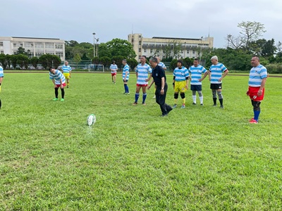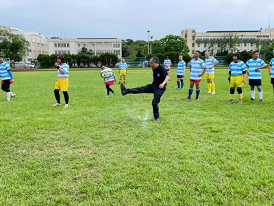 這次的友誼賽盛況空前,特別集結「台灣長青橄欖球俱樂部」會員、新埔工專以及光武工專校友。將近50位熱血男兒齊聚在校園操場,大家換上專屬戰袍,在綠茵草地上再次揮灑汗水,重溫當年的青春歲月!