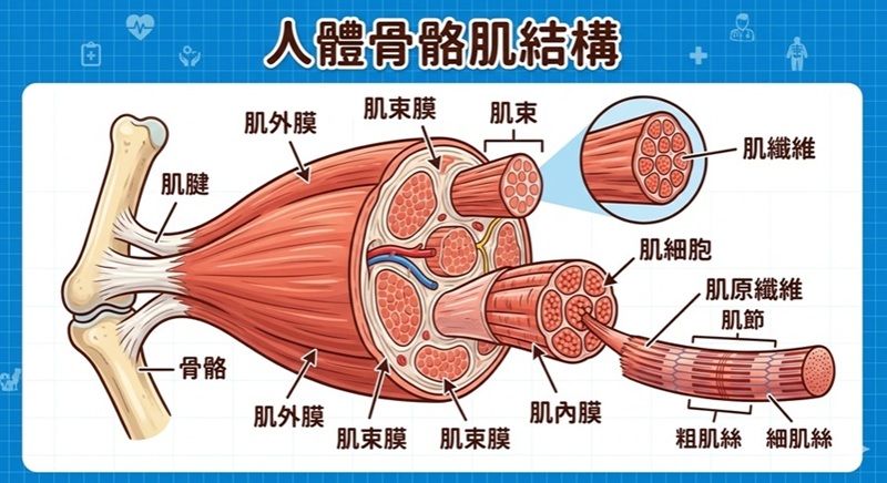 其實真正的「肌少症」(Sarcopenia)定義是很嚴謹的,而且必須跟幾種常見的疾病「鑑別」開來。咱簡單説一下「肌肉」的組成:有肌纖維、肌腱、脂肪、肌筋膜、肌腱膜⋯ ⋯,當然還有血管、神經⋯⋯等等從中穿過、連結。所以不同的部位損傷就有不同的名詞,這樣很好理解吧。