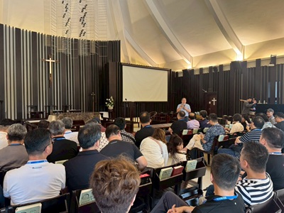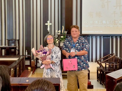 | 活動在充滿莊嚴與溫馨氣息的降臨堂揭開序幕,校友們特別準備鮮花與精美禮物贈予昔日的恩師:陳家宏、鄭超元及魏敏慧等3位老師,感謝老師們當年的栽培與叮嚀。這場跨越30年的謝師禮,讓現場充滿濃厚的尊師重道氛圍,師生敘舊場面極其動人。