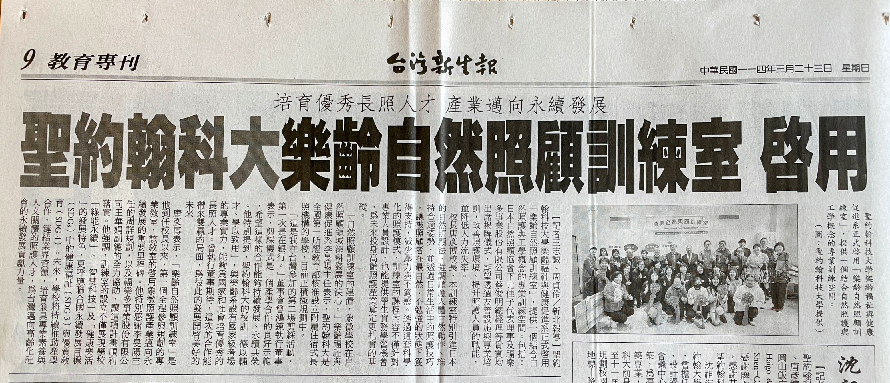 聖約翰科大樂齡自然照顧訓練室啟用 |