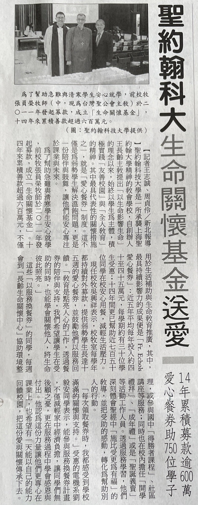 聖約翰大學 長齡生命關懷中心 籌款完成感恩
