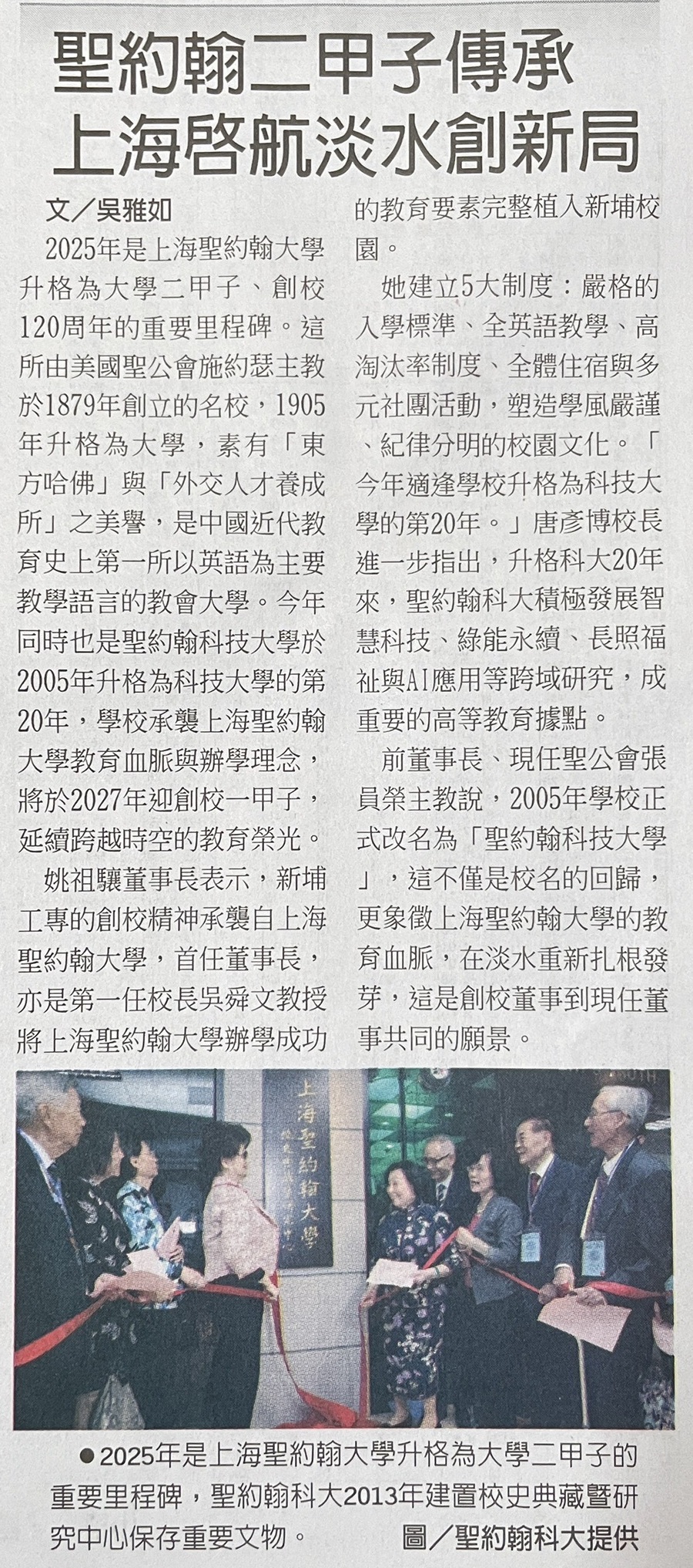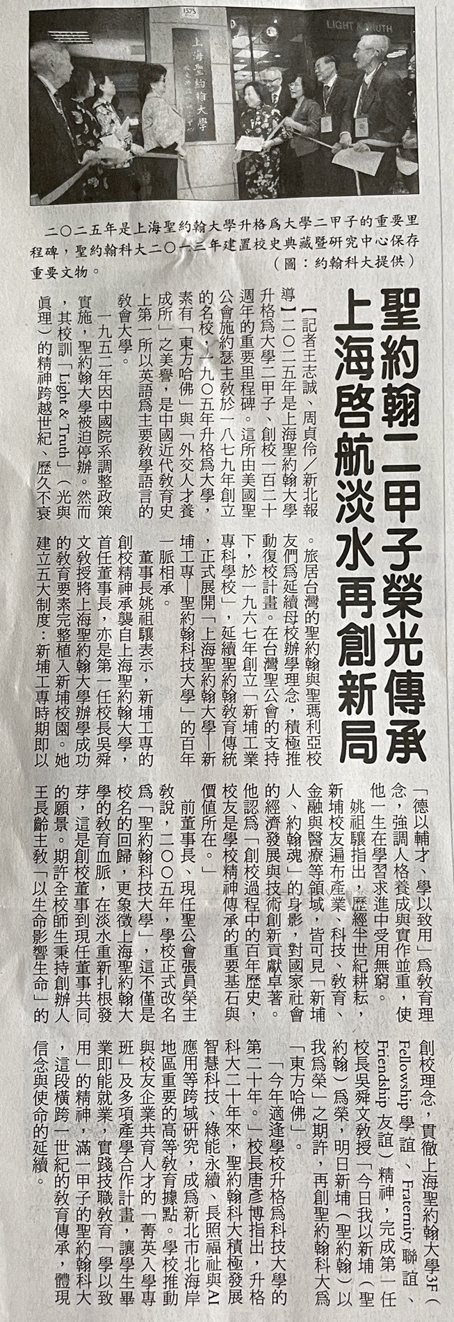 | 聖約翰二甲子榮光傳承 上海啟航淡水再創新局