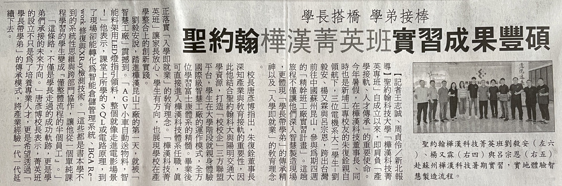 | 聖約翰樺漢菁英班實習成果豐碩