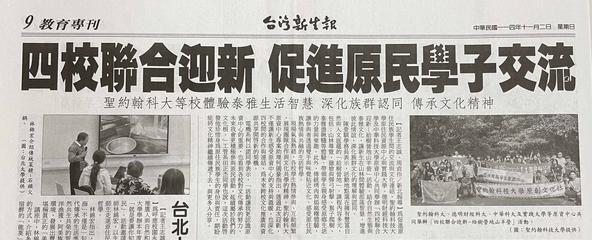 | 四校聯合迎新 促進原民學子交流