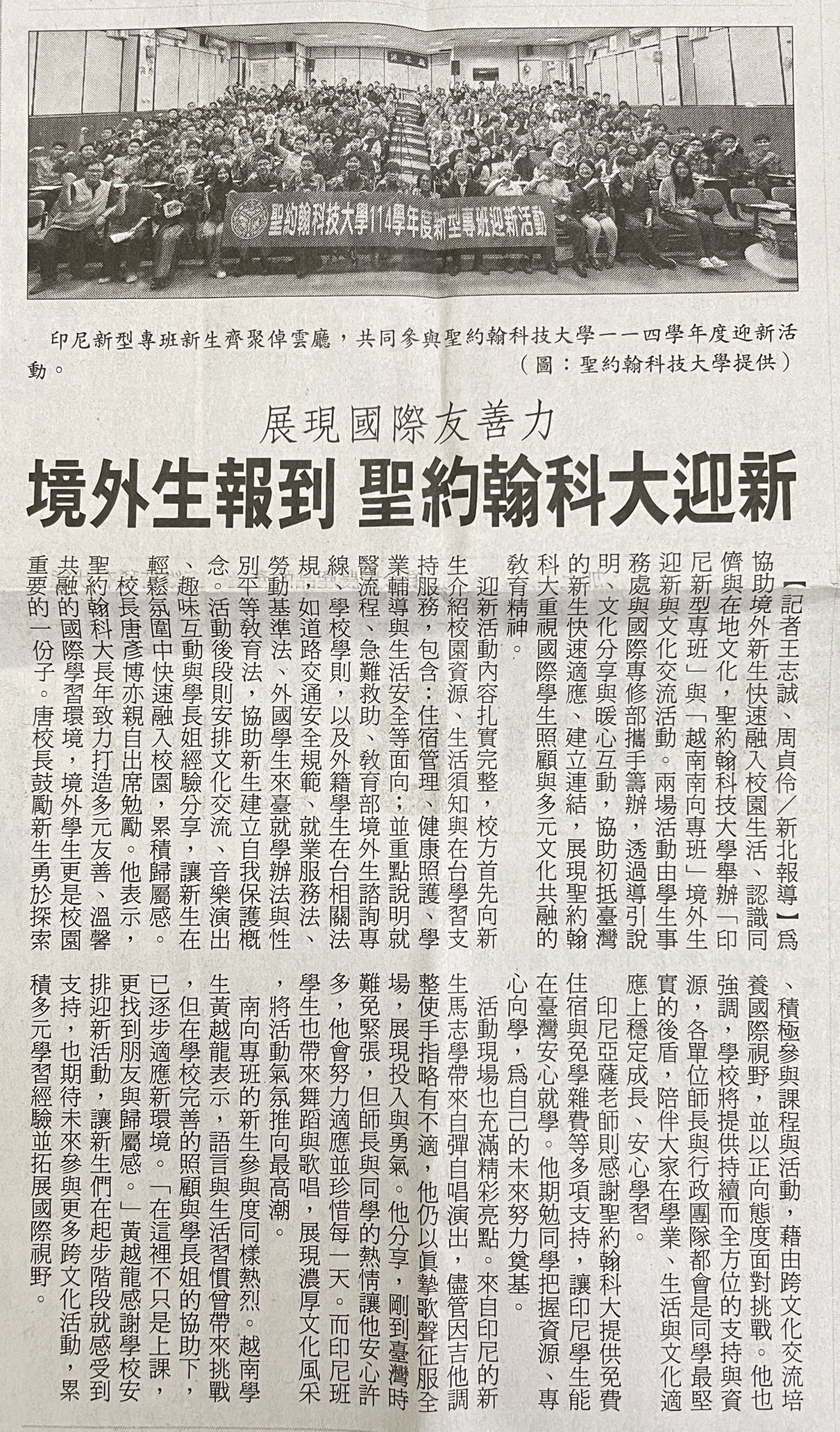 | 境外生報到 聖約翰科大迎新
