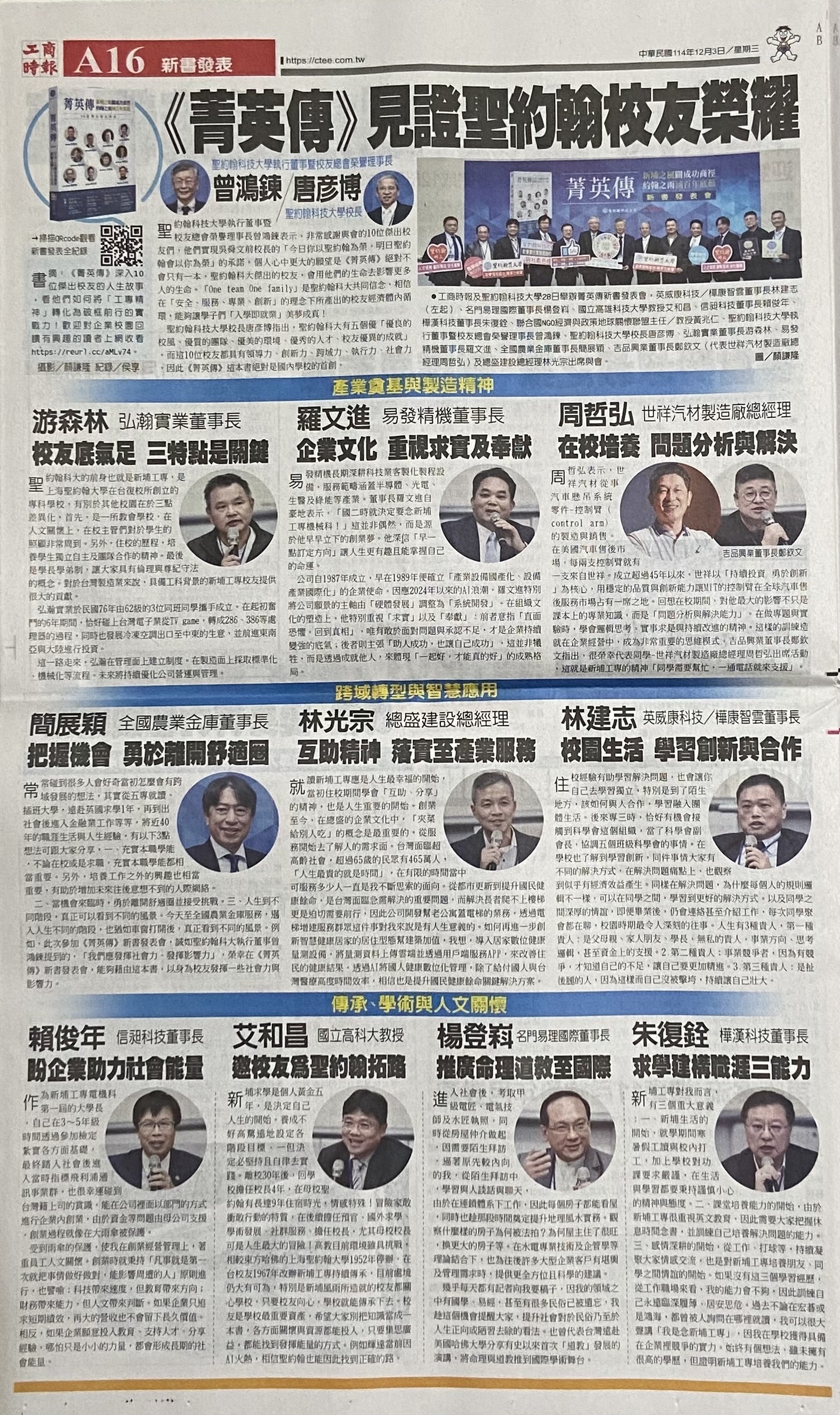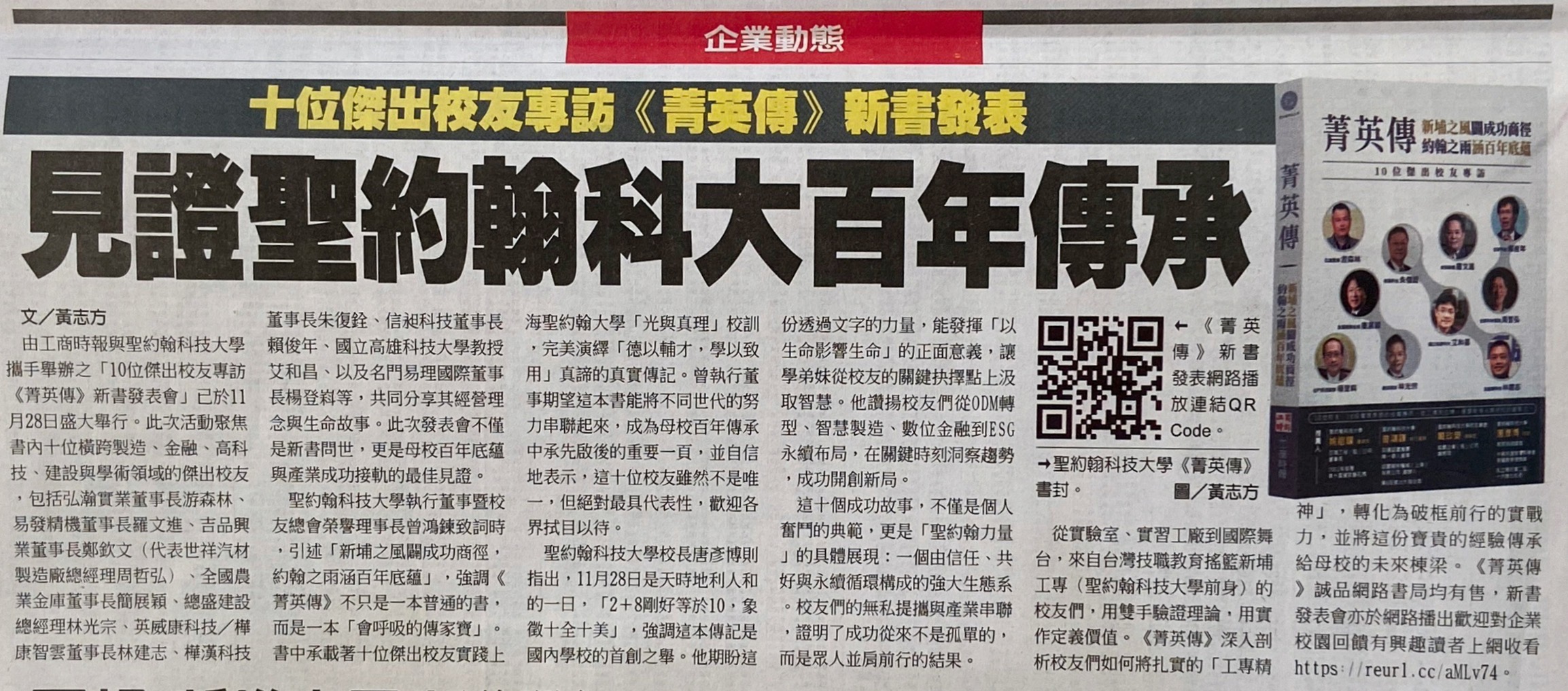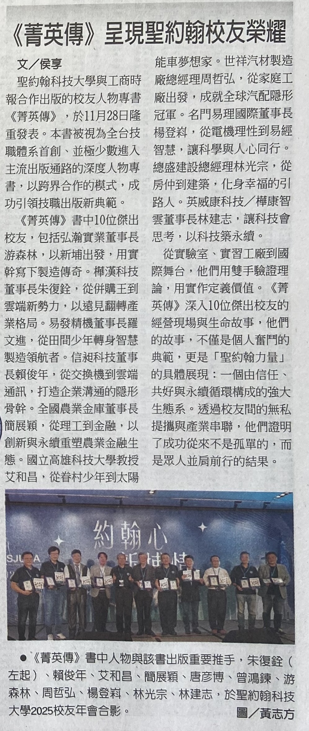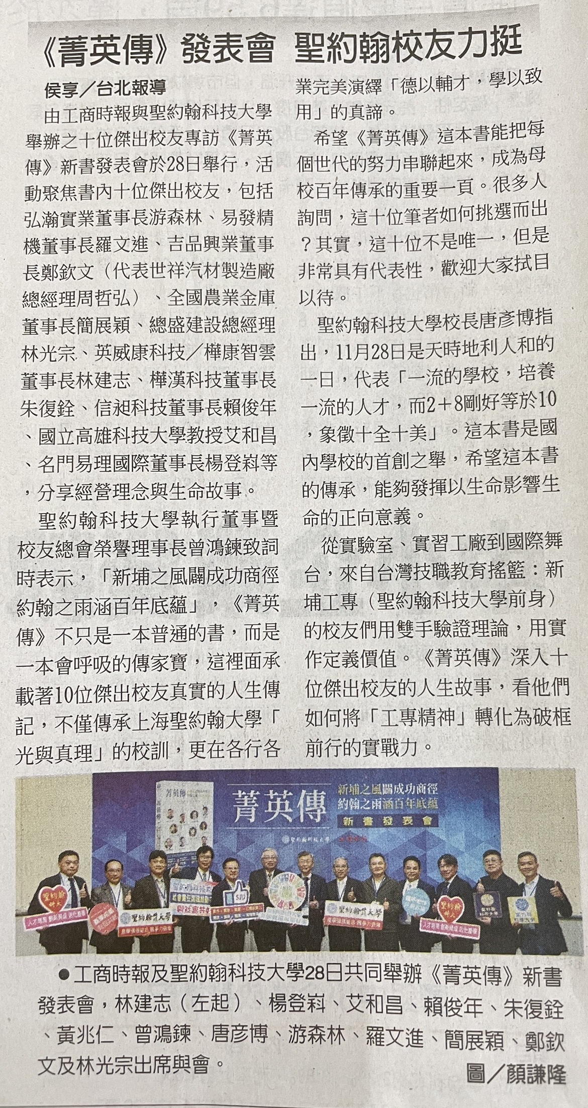 | 十位傑出校友專訪《菁英傳》新書發表 見證聖約翰科大百年傳承