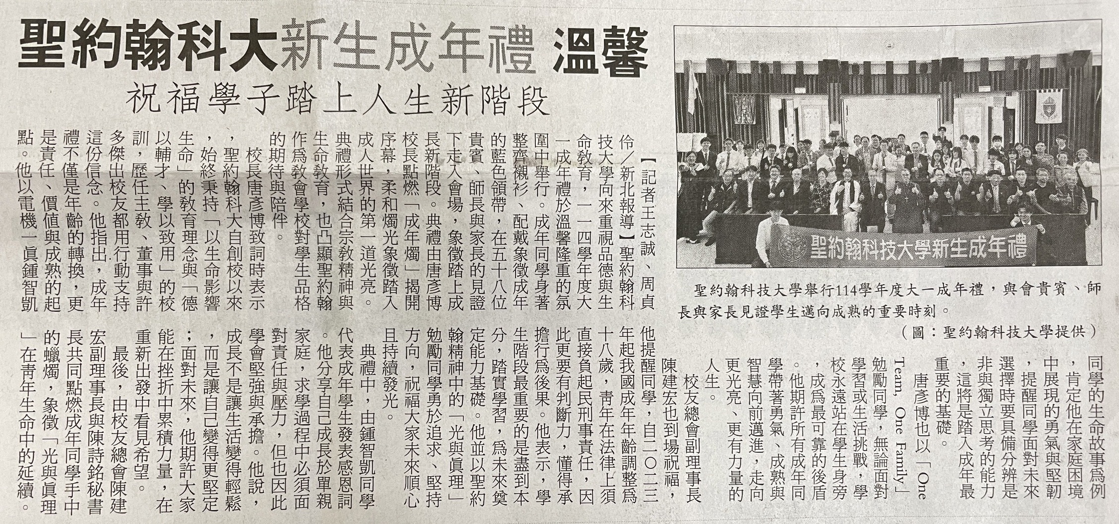 | 聖約翰科大新生成年禮溫馨