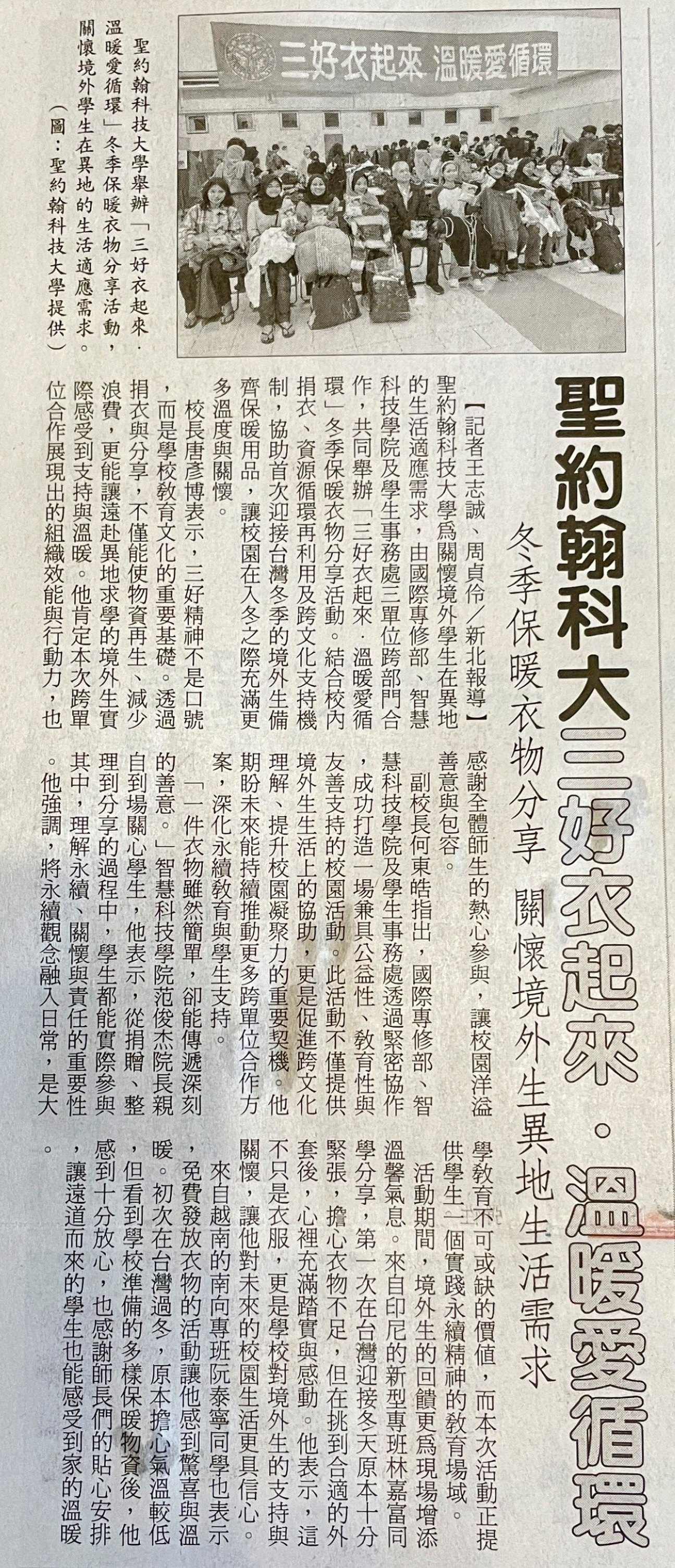 | 溫暖愛循環 聖約翰科大三好衣起來