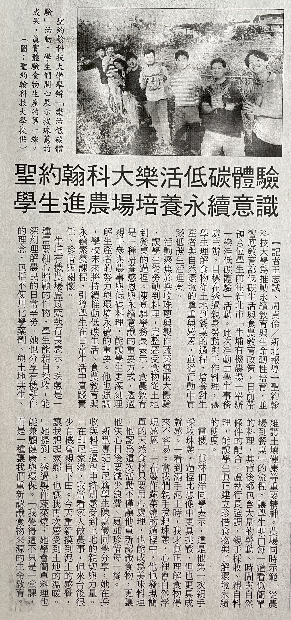 | 聖約翰科大樂活低碳體驗 學生進農場培養永續意識