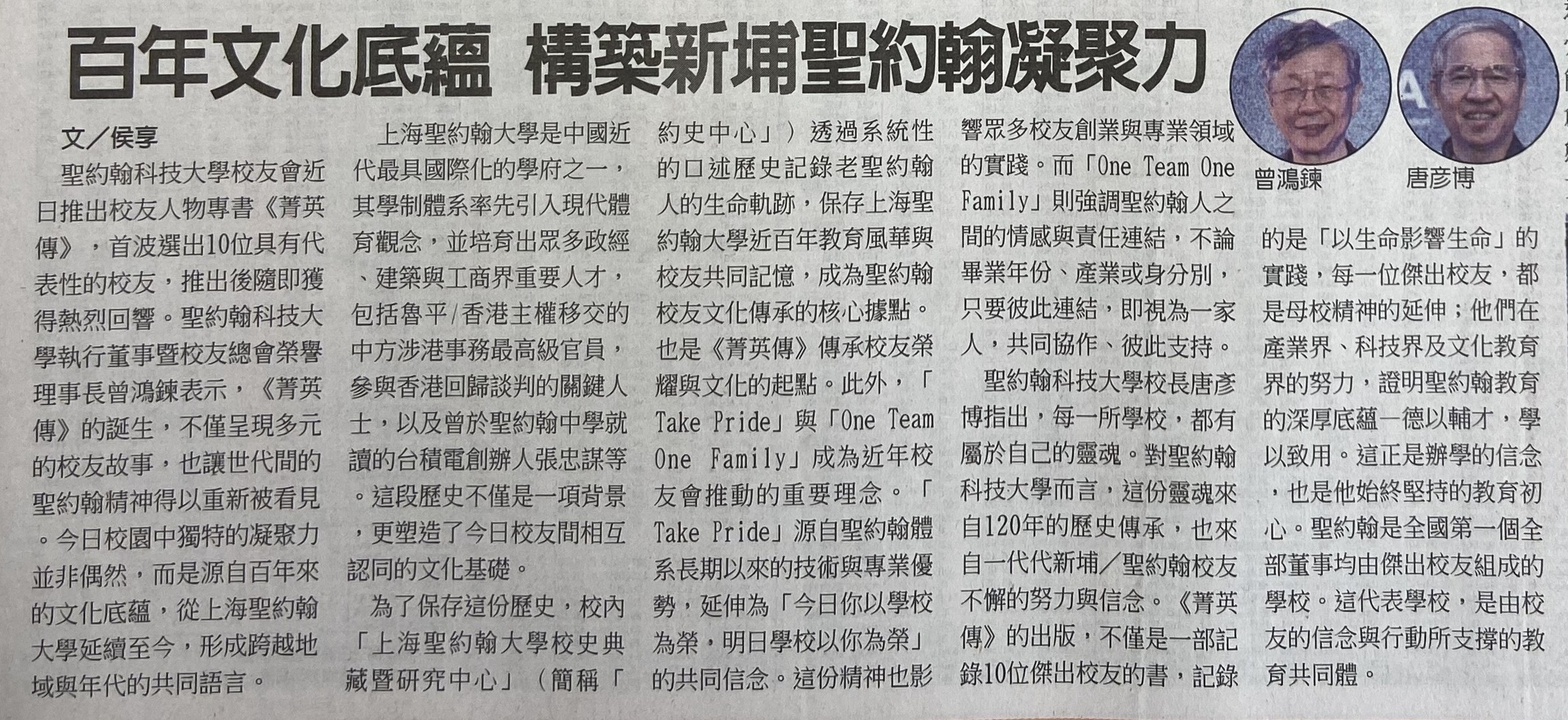 | 《菁英傳》呈現聖約翰校友榮耀 |