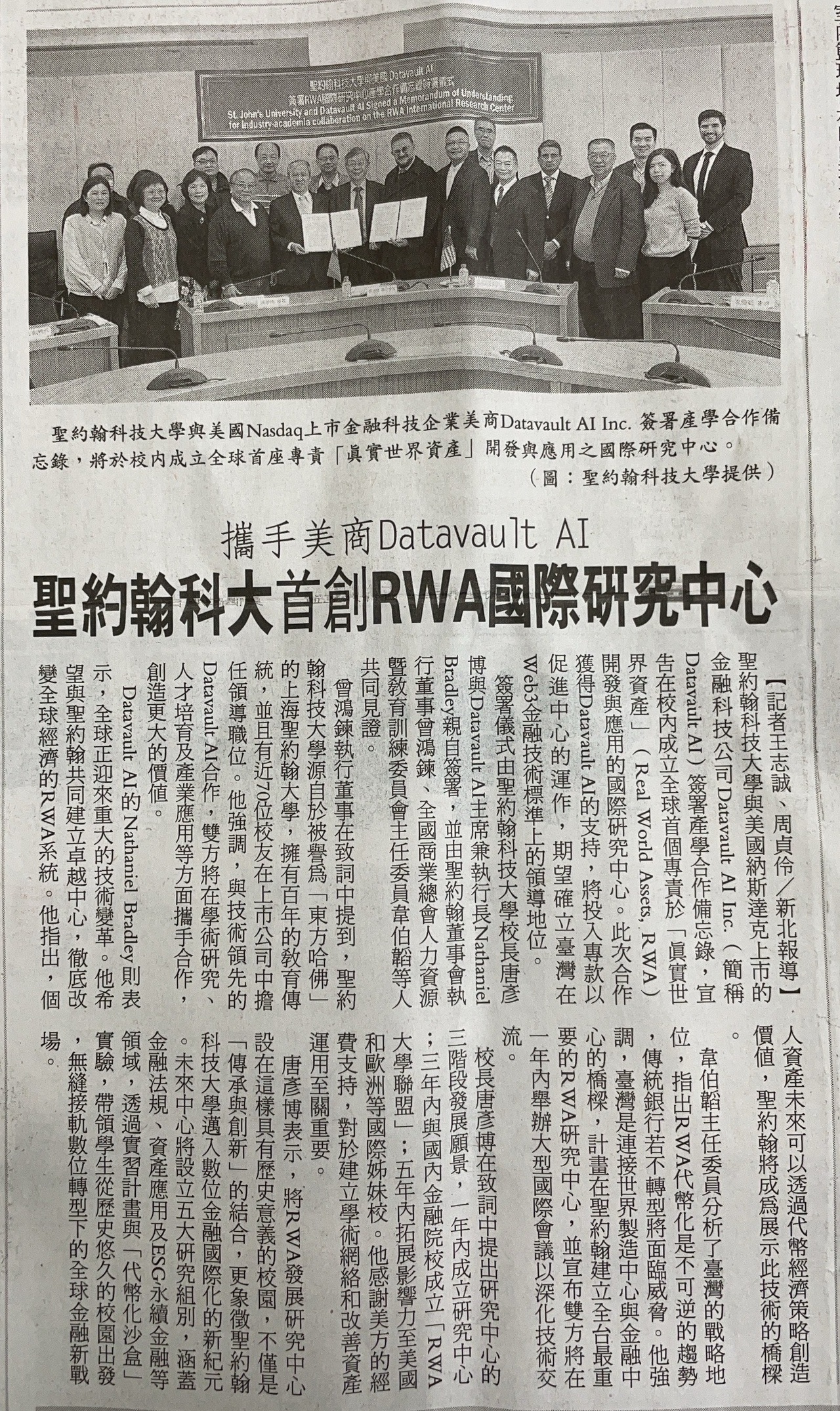 | 攜手美商Datavault AI 聖約翰科大首創RWA國際研究中心 |
