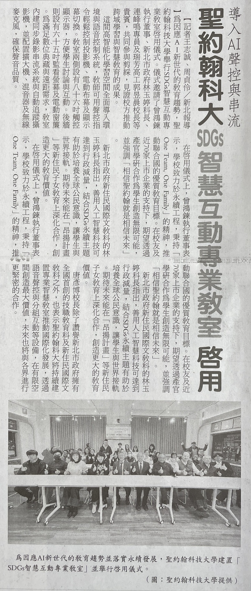| 聖約翰科大SDGs智慧互動專業教室啟用 |