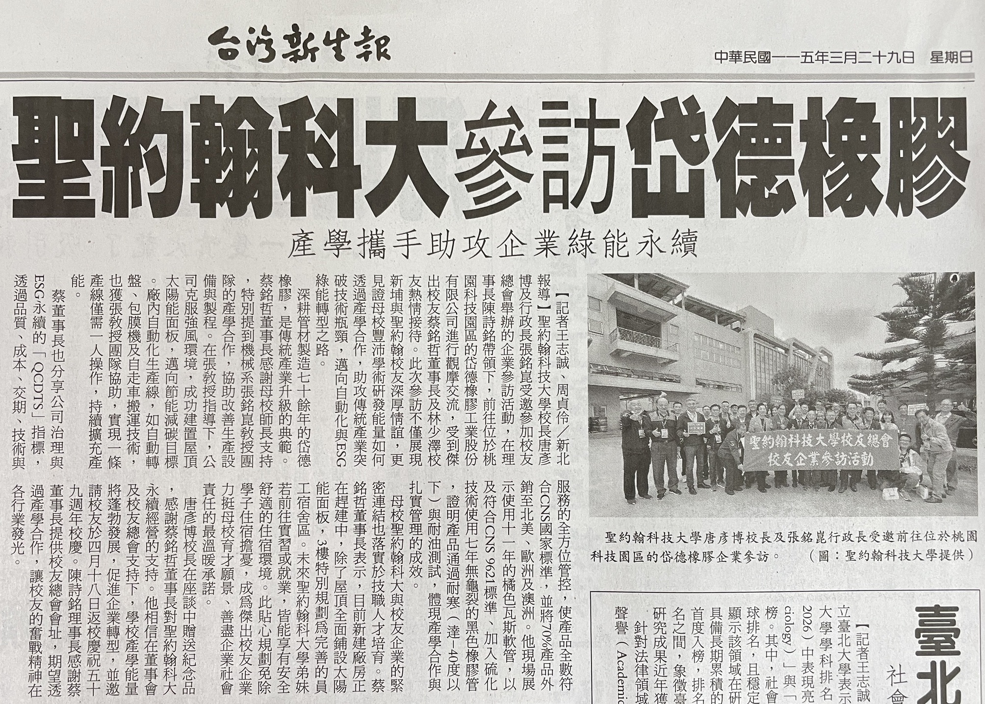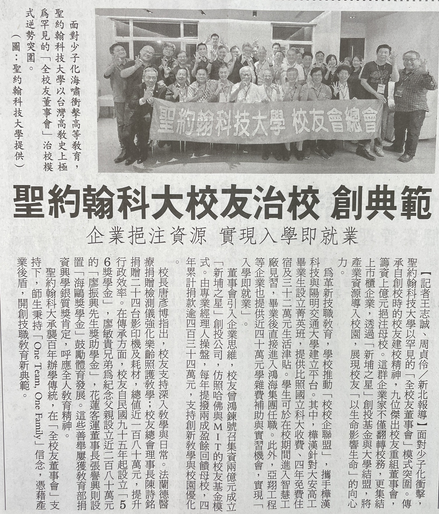 | 聖約翰科大校友治校 創典範 |